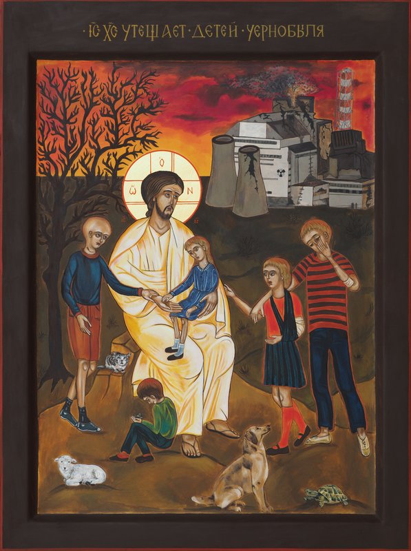 „Christus tröstet die Kinder von Tschernobyl“ heißt eine abgewandelte Ikone, die ursprünglich von Angela Heuer nach dem Reaktorunglück 1986 gemalt worden ist und passt gut zum Lesungstext des heutigen Sonntags.