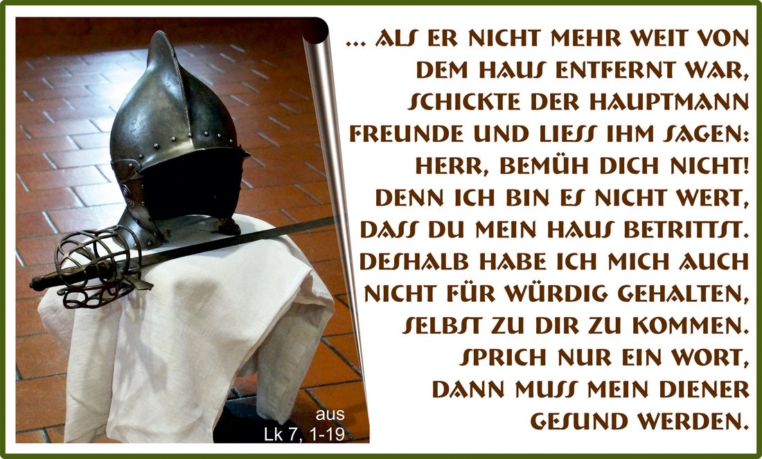 Im Gottesdienst beten wir etwas abgewandelt das Bibelzitat aus dem Matthäus-Evangelium.Es bezieht sich auf die Heilung eines Dieners, eines römischen Hauptmanns.