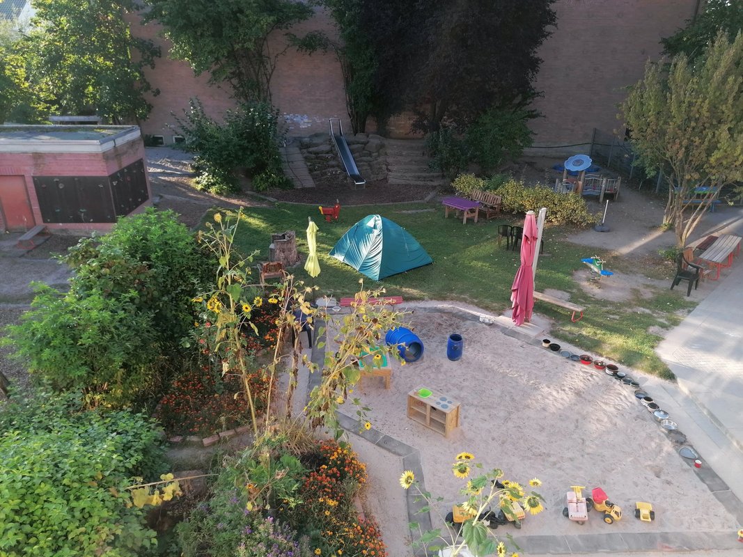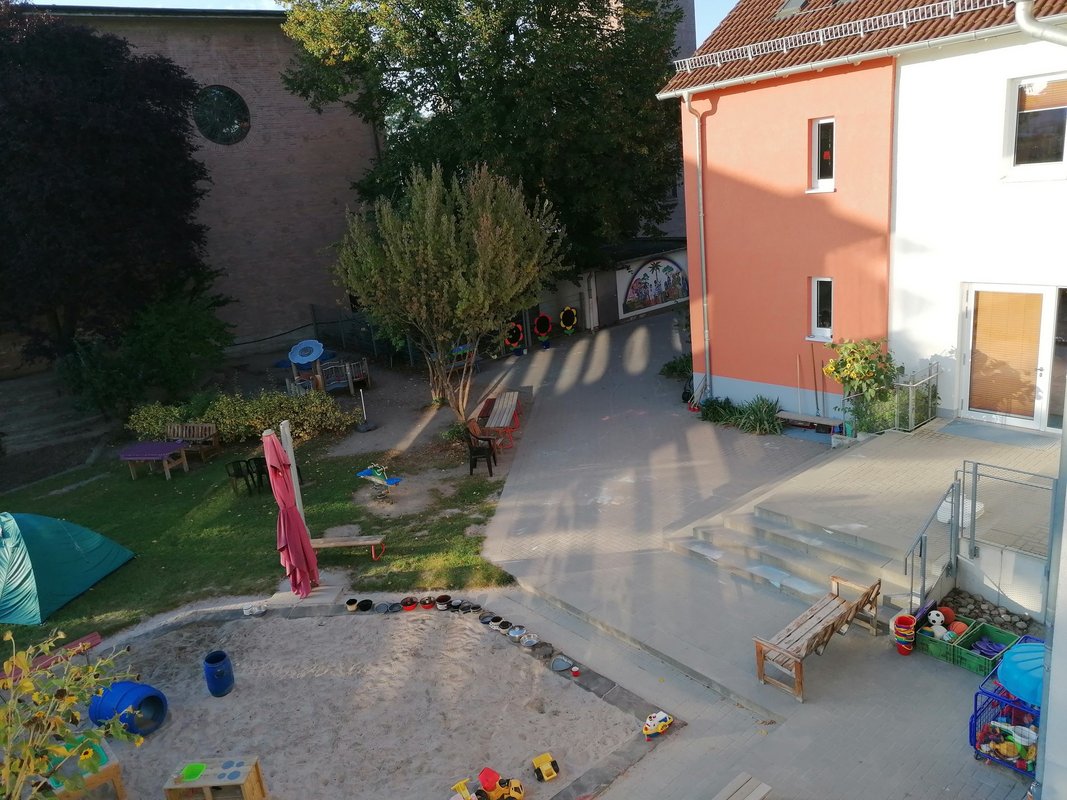 In der Kita werden täglich 75 Kinder (7-16.30 Uhr) von 2-6 Jahren betreut.
