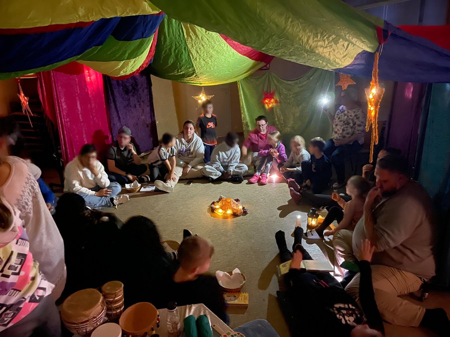 gemütliche Runde im Erzähl-Zelt