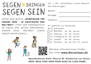 St. Michael: | Die Sternsinger sind am 06. Januar nachmittags unterwegs. |