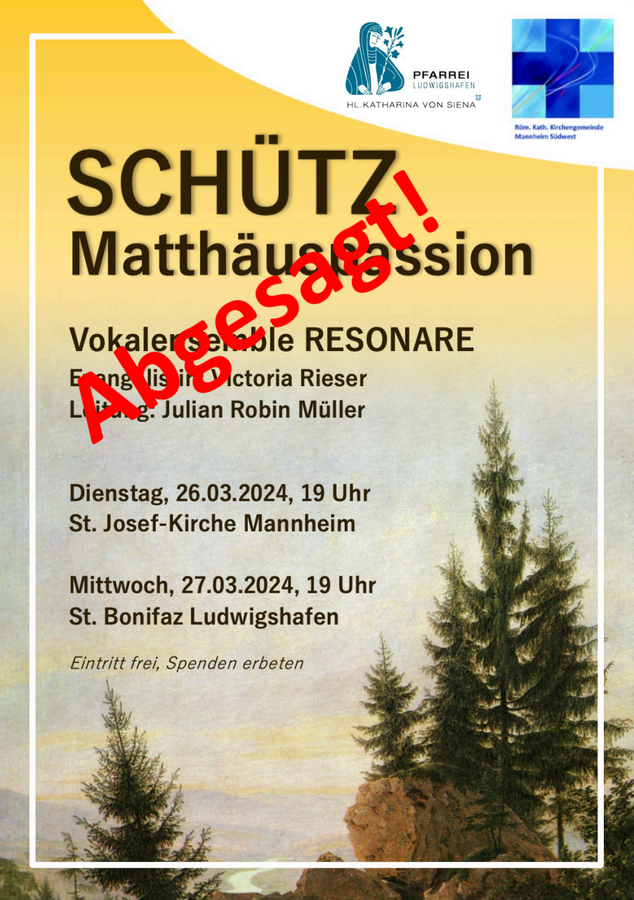 Am Mittwoch, 27. März findet um 19.00 Uhr ein Passionskonzert in der Pfarrkirche St. Bonifaz statt (Deidesheimer Str. 2).