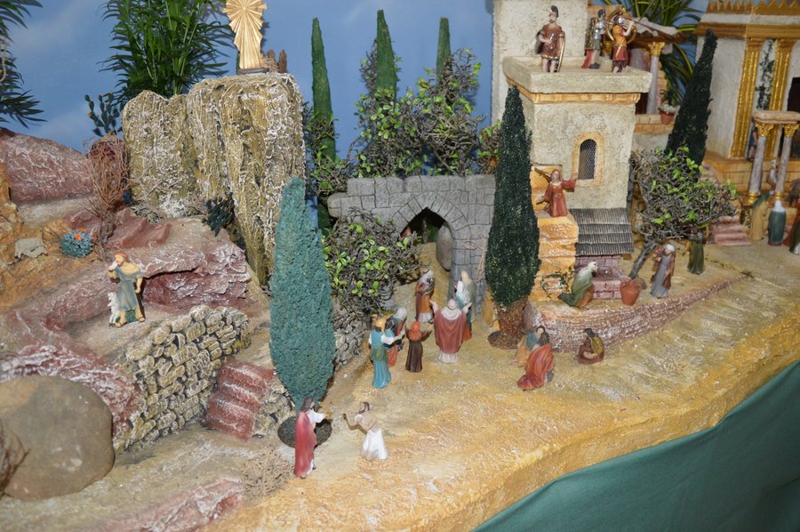 In der Passionskrippe wird das österliche Geschehen und der Leidensweg Jesu dargestellt. Sichtbar sind die Stationen wie Jesus mit Esel nach Jerusalem einzieht, mit seinen Jüngern das letzte Abendmahl feiert, im Garten Gethsemane gefangengenommen wird, sein Kreuz trägt, die Kreuzigung und das Grab Jesu.
